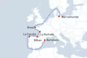 Itinerario : Barcelona, La Coruña, Bilbao, La Rochelle, Brest, Warnemunde