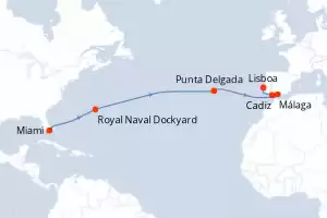 Itinerario : Miami, Royal Naval Dockyard, Punta Delgada, Málaga, Cadiz, Lisboa