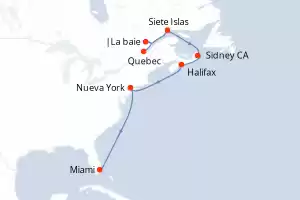Itinerario : Quebec, |La baie, Siete Islas, Sidney, Halifax, Nueva York, Miami