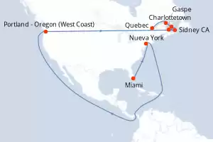 Itinerario : Miami, Nueva York, Portland - Oregon (West Coast), Sidney, Charlottetown, Islas de la Madeleine, Gaspe, Quebec