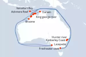 Francia, Tonga, Chile, Papúa Nueva Guinea, Reino Unido, Fidji (islas), Indonesia, Vanuatu, Iles Cook, Australia, Islas Salomon, Samoa Itinerario : Darwin, Ambon, Isla Misool, Yenwaupnor, Mansuar Island, Manokwari, Cenderawasih Bay, Jayapura, Vanimo, garove island, Duke of York Island, Rabaul, Gizo, Honiara (Islas Salomon), vanikoro, Isla Ambrym, Lautoka, Kadavu Island, Fulaga, Vavau, Nukupule Island, Apia, Aitutaki, Raiatea, Huahine, Papeete, Anaa, Toau, Fakarava, Pitcairn, Ducie Island, Hango Roa - Isla de Pascua, Iles de Juan Fernandez, San antonio Chile