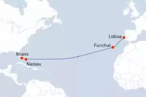 Itinerario : Miami, Nassau, Punta Delgada, Lisboa