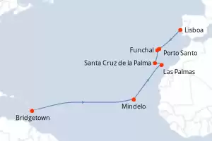 Itinerario : Bridgetown, Mindelo, Las Palmas, Santa Cruz de la Palma, Funchal, Porto Santo, Lisboa