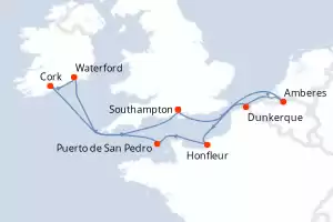 Itinerario : Southampton, Amberes, Dunkerque, Honfleur, Puerto de San Pedro, Cork, Waterford, Southampton