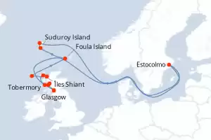 Itinerario : Glasgow, Tobermory, Îles Shiant, Inverewe, Islas de Santa Kilda, Foula Island, Suduroy Island, Streymoy Island, Estocolmo, Fuerte William, Loch Linnhe, Glasgow
