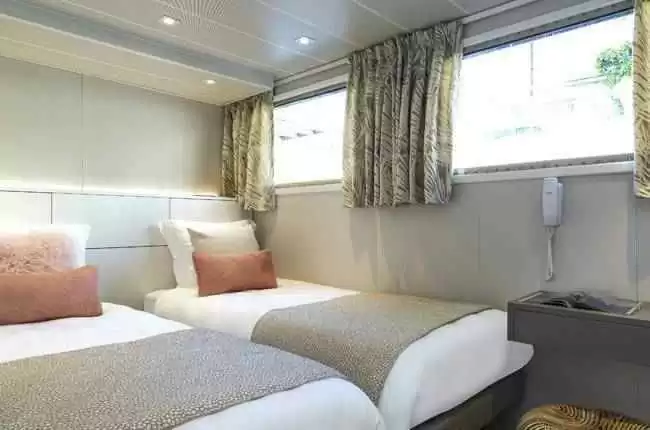 El MS Anne-Marie, distribuidos en la cubierta principal, dispone de 11 camarotes dobles, todos ellos con ventana y dos camas individuales.