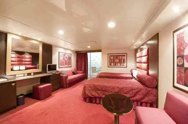 Con una superficie de 19 a 20 m² y un balcón privado de 4 a 6 m², estas cabinas permiten disfrutar de un espacio exterior para admirar el mar. Incluyen una cama doble convertible en dos camas individuales, una sala de estar con sofá, un baño equipado con ducha o bañera, así como un tocador, una TV interactive, un minibar y aire acondicionado, para una estancia con todo el confort.