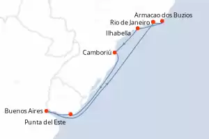 Itinerario : Rio de Janeiro, Armacao dos Buzios, Ilhabella, Camboriú, Punta del Este, Buenos Aires, Rio de Janeiro