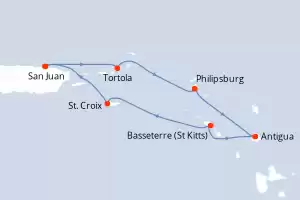 Itinerario : San Juan, Tortola, Philipsburg, Antigua, Basseterre (St Kitts), St. Croix, San Juan