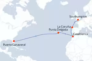 Itinerario : Puerto Canaveral, Punta Delgada, Casablanca, La Coruña, Southampton