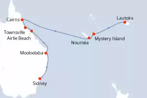 Itinerario : Lautoka, Mystery Island, Nouméa, Cairns, Townsville, Airlie Beach, Mooloolaba, Sidney