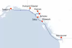 Itinerario : Seward, Hubard Glacier, Juneau, Haines, Sitka, Klawock, Vancouver