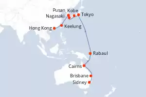 Australia, Japón, Corea del Sur, Taiwán, China Itinerario: Sidney , Sidney , Brisbane , Cairns , Rabaul , Tokyo , Tokyo , Kobe , Nagasaki , Pusan , Keelung , Hong Kong Pensión completa Costa Deliziosa 27 días Camarote estándar Sidney 22/01/2026 desde 2579 € + desde 4544 € Tasas : + 420 € Niños gratis hasta los 17 años Club niños desde los 3 años Pensión completa Ver las ofertas