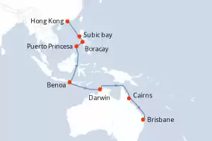 China, Filipinas, Australia Itinerario: Hong Kong , Subic bay , Boracay , Puerto Princesa , Benoa , Benoa , Darwin , Cairns , Brisbane Pensión completa Costa Serena 20 días Camarote estándar Hong Kong 23/10/2026 desde 2359 € + desde 4179 € Tasas : + 420 € Niños gratis hasta los 17 años Club niños desde los 3 años Pensión completa Ver las ofertas