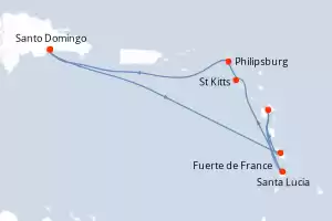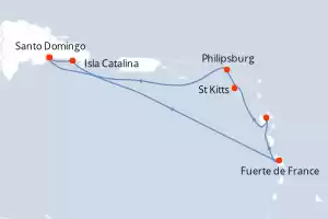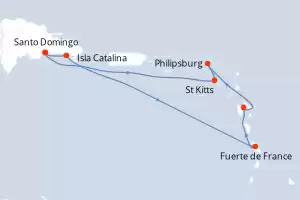Rep. Dominicana, Antillas Itinerario: Santo Domingo , Isla Catalina , Fort-de-France , Pointe a pitre(Guadalupe) , Philipsburg , St Kitts , Santo Domingo Pensión completa Costa Fascinosa 8 días Camarote estándar Santo Domingo 15/12/2025 desde 289 € Tasas : + 200 € Niños gratis hasta los 17 años Club niños desde los 3 años Pensión completa Ver las ofertas