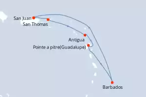 Itinerario : San Juan, San Thomas, Saint Martin (Antilles Néerlandaises), Antigua, Santa Lucia, Barbados, San Juan