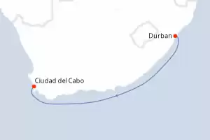 Sudafrica Itinerario: Durban , Ciudad del Cabo Pensión completa MSC Opera 4 días Camarote estándar Durban 27/03/2026 desde 169 € Tasas : + 100 € niños gratis hasta 11 años Club para niños desde los 3 años Paquete de bebidas disponible Pensión completa Ver las ofertas