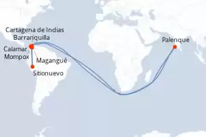 Colombia Itinerario: Cartagena de Indias , Palenque , Calamar , Magangue , Mompox , Mompox , Mompox , Santa Barbara de Pinto , Sitionuevo , Barranquilla , Barranquilla Pensión completa Amamelodia 8 días Camarote con balcón Cartagena de Indias 18/11/2026 desde 2903 € Tasas : + 183 € Pensión completa Otras fechas : 19 nov. 25 17 dic. 25 14 ene. 26 Otras fechas Ver las ofertas