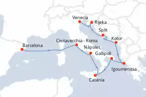 Montenegro, Grecia, Italia, Croacia Itinerario: Civitavecchia - Roma , Corfú , Kotor , Dubrovnik , Split , Nápoles , Civitavecchia - Roma Pensión completa Legend 10 días Camarote estándar Civitavecchia - Roma 23/10/2026 desde 740 € Tasas : + 180 € Pensión completa Ver las ofertas
