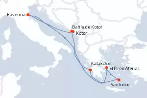 Italia,Croacia,Montenegro,Grecia Itinerario: Ravenna , Baie de Kotor , Kotor , El Pireo Atenas , Santoríni , Katakolon , Ravenna Pensión completa Brilliance of the Seas 8 días Camarote estándar Ravenna 23/10/2027 desde 965 € Tasas : + 259 € PRECIO ÚNICO Shows dignos de Broadway Actividades WOW Pensión completa Ver las ofertas