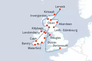 Reino Unido, Irlanda Itinerario: Leith - Edimbourg , Leith - Edimbourg , Aberdeen , Invergordon , Lerwick , Kirkwall , Ullapool , Oban , Greenock , Douglas , Dublin , Dublin , Waterford , Cobh , Bantry , Foynes , Killybegs , Londonderry , Belfast , Belfast , Portsmouth Pensión completa Azamara Quest 23 días Camarote estándar Leith - Edimbourg 28/07/2026 desde 7539 € Tasas : + 590 € bebidas incluidas Pensión completa Ver las ofertas