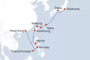 Filipinas, China, Japón, Taiwán Itinerario: Hong Kong , Puerto Princesa , Boracay , Manila , Kaoshiung , Keelung , Ishigaki , Naha , Osaka , Yokohama Pensión completa MS Westerdam 15 días Camarote estándar Hong Kong 01/02/2026 desde 1875 € Tasas : + 214 € Cocina refinada Experiencia Premium Pensión completa Ver las ofertas