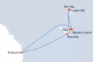 Nueva Caledonia y Vanuatu Itinerario: Brisbane , Nouméa , Lifou , Port Vila , Luganville , Mystery Island , Brisbane Pensión completa Crown Princess 12 días Camarote estándar Brisbane 22/01/2026 desde 395 € Tasas : + 451 € Pensión completa Ver las ofertas
