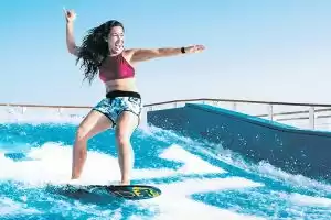 A bordo, grandes y pequeños pueden disfrutar de piscinas, bañeras de hidromasaje, parques acuáticos, cines, espectáculos al estilo de Broadway, simuladores de Fórmula 1 y mucho más. Los barcos de Royal Caribbean son verdaderos templos del entretenimiento, con atracciones excepcionales como el tobogán acuático Ultimate Abyss y los simuladores de surf FlowRider.